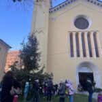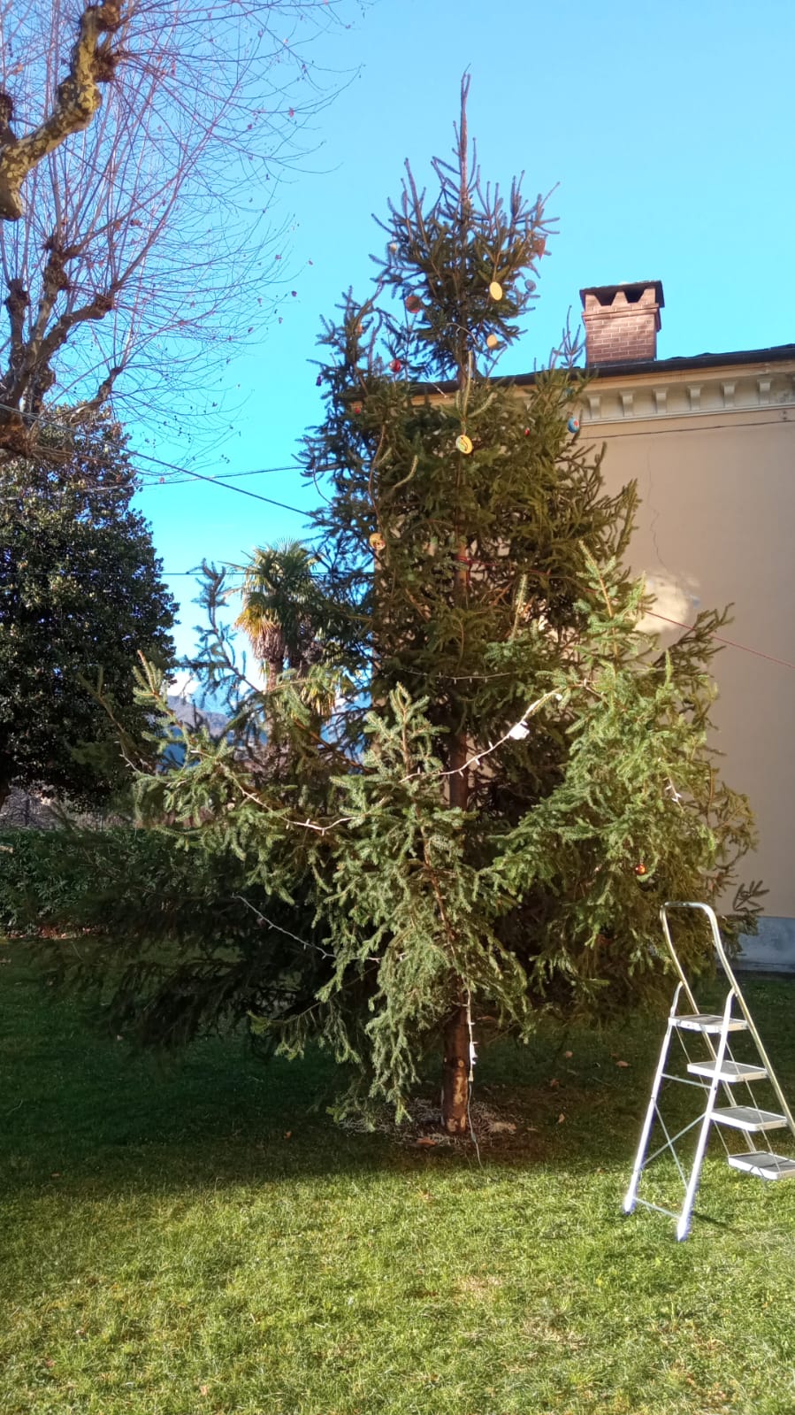 Sabato mattina, 13 dicembre, grazie a una “magia” delle commissioni logistica e stabili, un grande albero di Natale è “cresciuto” a tempo di record sul prato davanti al Tempio del centro.