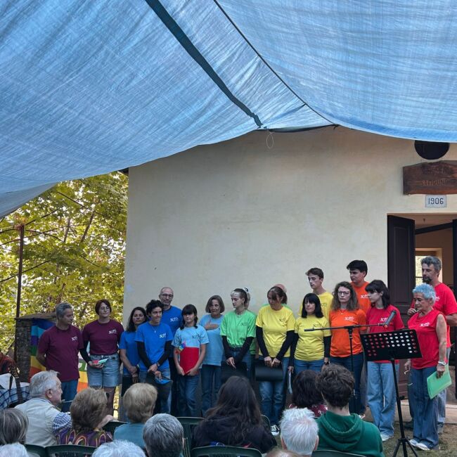 Il Coretto valdese, ospite per il secondo anno, ha coinvolto il pubblico nel ricordo della resistenza in Val Pellice attraverso canti e testimonianze di alcuni eventi tragici custoditi nelle famiglie di diversi/e componenti del coro.